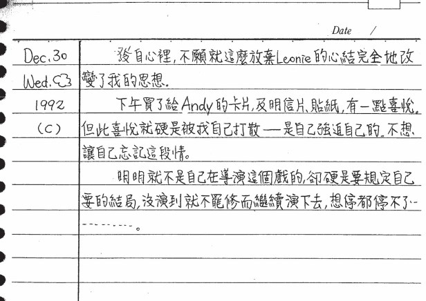 以下是30年前的今天(1992年12月30日)當時16歲的你所親筆寫下的日記: