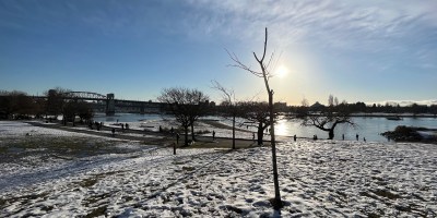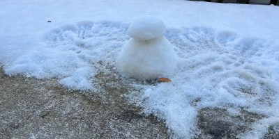 四人在冬陽與白雪的海灣邊,京園外與女兒堆雪人,兒子特有的責備感與穩健台風。鍵盤又壞:右箭鍵