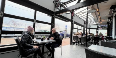 連續第三天出門走走,把握車程與孩子溝通。晴天開車40分鐘至北溫吃冰淇淋,比薩店改裝小小畫廊