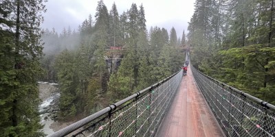 灰雨中拜訪森林之家,走吊橋。我們家的特產「努力的技術」,妹妹大哭跳不出2級?哥哥說不上暑課