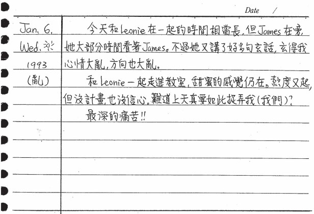 以下是30年前的今天(1993年1月6日)當時16歲的你所親筆寫下的日記: