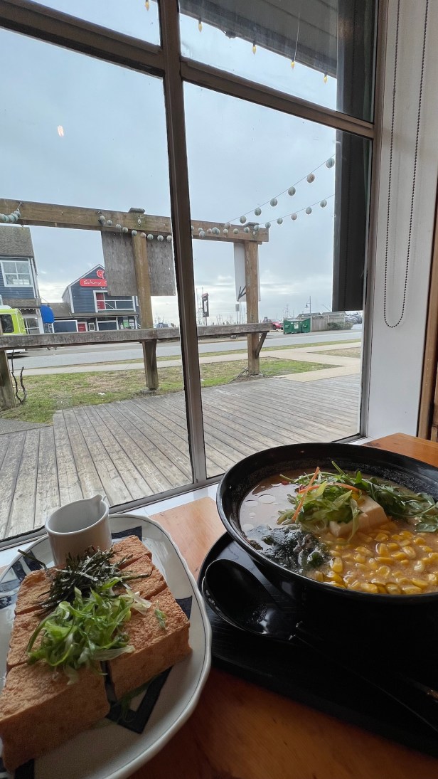 步行到旁邊的G-MEN,這間剛好是上次外送來的孩子說「溫哥華最棒的拉麵」,我們剛好有機會坐在最角落最裡頭的寬敞四人位,還有大窗看外面,於是我與好隊友不但點了拉麵與小菜,幫孩子外帶拉麵(麵不煮)各一,還順便預訂幾週後的除夕當天的中午,坐在這個位子,讓我們可以一起過個難忘的除夕。