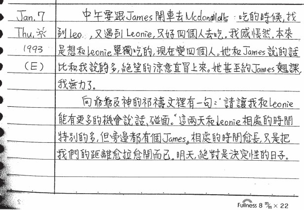 以下是30年前的今天(1993年1月7日)當時16歲的你所親筆寫下的日記:
