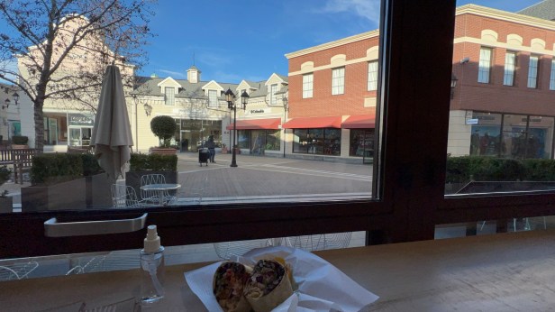今天好隊友找到一間很特別的咖啡廳,是我們的連續第四間,來到的是溫哥華後來才開的室外的outlet名店商場的中央,一間A開頭的咖啡廳,像是遊樂園的旋轉木馬的位於多條路交界的中間,這也像迪士尼小鎮,2樓全都只是裝飾,街上的音樂從來沒停過;這時間,沒人在逛街,我們輕鬆找到了窗邊的位子。時間是中午12點多一點,點了咖啡,坐下來,開始寫。