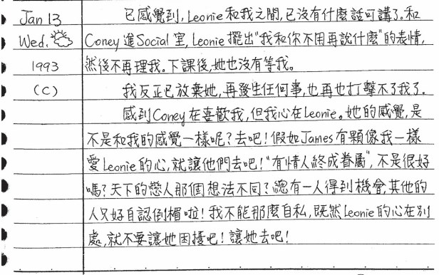 以下是30年前的今天(1993年1月13日)當時16歲的你所親筆寫下的日記: