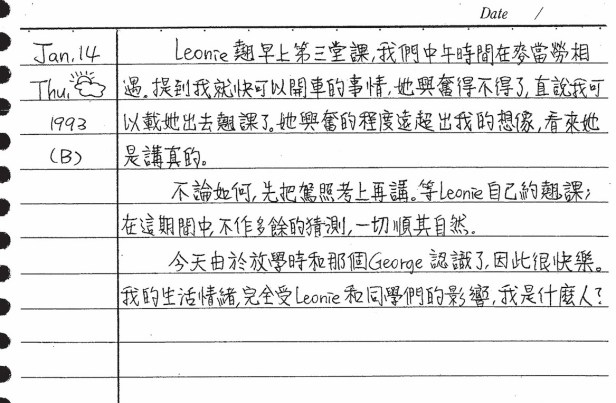 以下是30年前的今天(1993年1月14日)當時16歲的你所親筆寫下的日記: