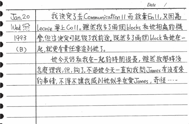 以下是30年前的今天(1993年1月20日)當時16歲的你所親筆寫下的日記: