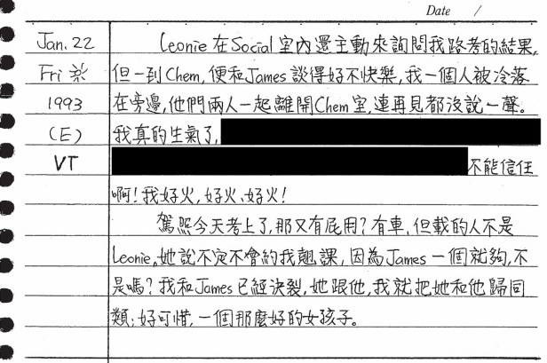 以下是30年前的今天(1993年1月22日)當時16歲的你所親筆寫下的日記:
