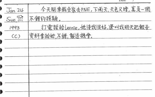 以下是30年前的今天(1993年1月24日)當時16歲的你所親筆寫下的日記: