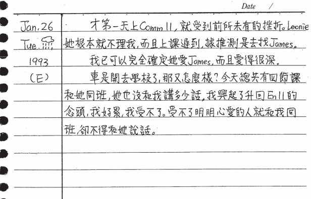 以下是30年前的今天(1993年1月26日)當時16歲的你所親筆寫下的日記: