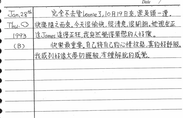 以下是30年前的今天(1993年1月28日)當時16歲的你所親筆寫下的日記: