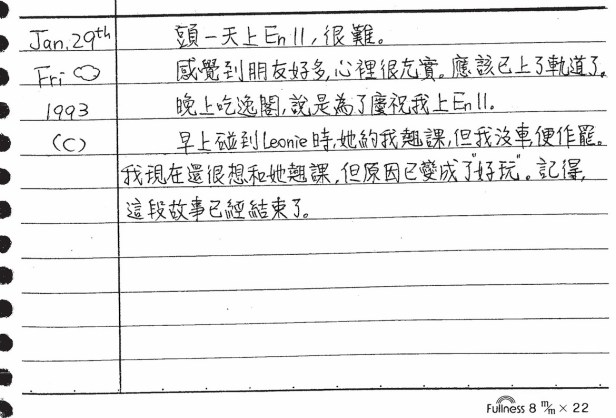 以下是30年前的今天(1993年1月29日)當時16歲的你所親筆寫下的日記:
