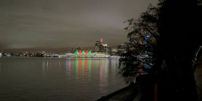 返加第一個跨年,帶孩子開小小白夜闖溫哥華鬧區,Stanley灣畔等煙火落空。上山Capilano水壩靜湖邊