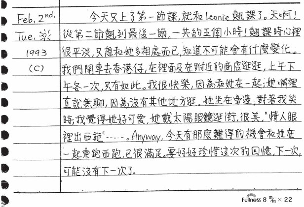 以下是30年前的今天(1993年2月2日)當時16歲的你所親筆寫下的日記: