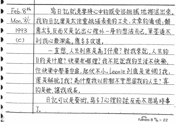 以下是30年前的今天(1993年2月8日)當時16歲的你所親筆寫下的日記: