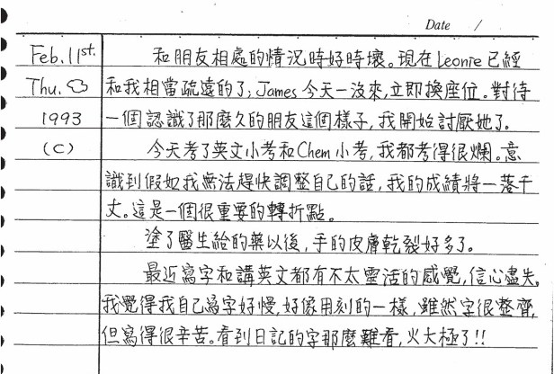 以下是30年前的今天(1993年2月11日)當時16歲的你所親筆寫下的日記: