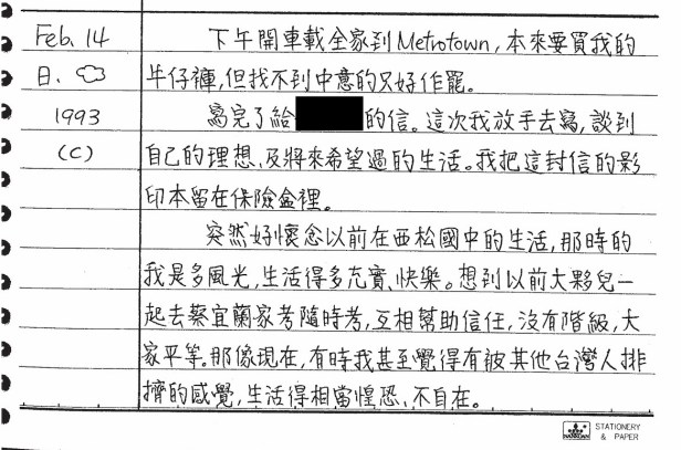 以下是30年前的今天(1993年2月14日)當時16歲的你所親筆寫下的日記: