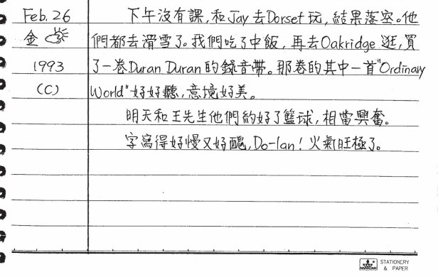 以下是30年前的今天(1993年2月26日)當時16歲的你所親筆寫下的日記: