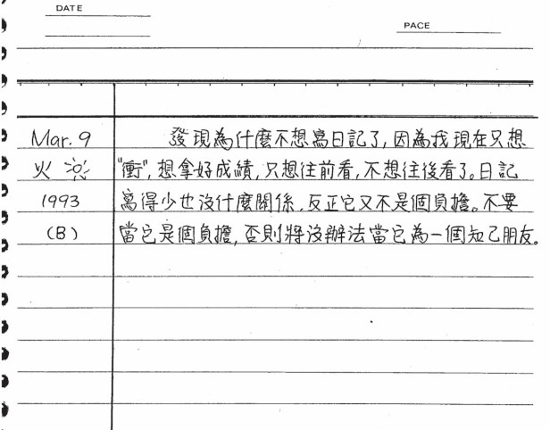 以下是30年前的今天(1993年3月9日)當時16歲的你所親筆寫下的日記: