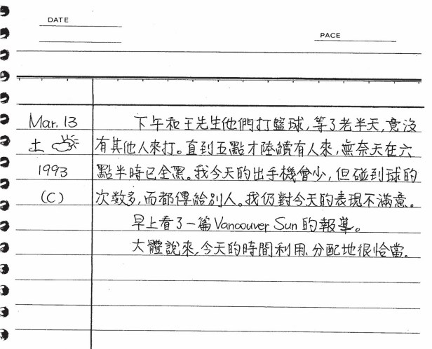 以下是30年前的今天(1993年3月13日)當時16歲的你所親筆寫下的日記: