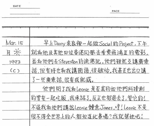 以下是30年前的今天(1993年3月15日)當時16歲的你所親筆寫下的日記: