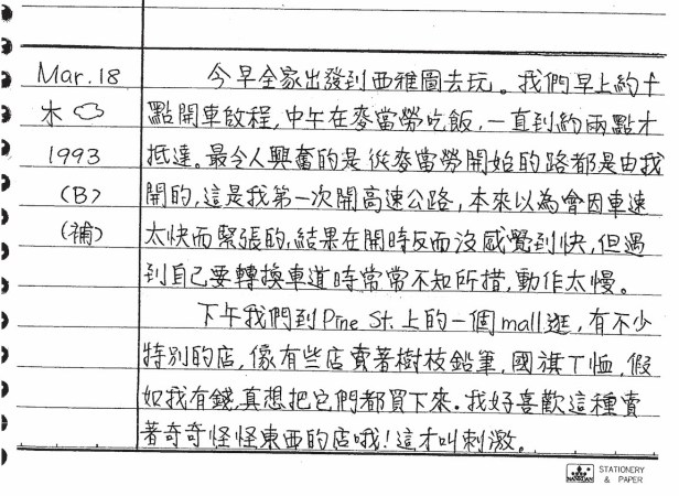 以下是30年前的今天(1993年3月18日)當時16歲的你所親筆寫下的日記: