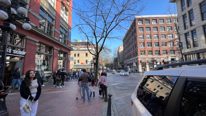 我們去市中心吧,這次繞一圈Robson Square,人好多,有一半的人參加某市集,另一半則在抗議,抗議的大概又分幾群,我們看到一個標語寫什麼什麼普丁,人和螞蟻一樣多。2023年的世界,比以前多更多獨權者,都要謝謝網路,失去了媒體記者、知識份子的filter,人民的思考更地板、更單一了,很多人想通了、看清楚了以後就會想移民到安全的地方,所以移民會是接下來的大趨勢,這是確定的。叫妹妹拿出照相機趕快拍攝影課,偏偏他們攝影老師說不能拍到「人」,人再多也沒用。這時候我繞一圈,定位Gastown,經過一區,有一個女遊民站得歪歪的,面對一個沒有窗子的大樓,不知道在那邊做什麼,妹妹在車上嚇的一直叫,後來發現那位女士是斷了手臂的,我們才發現好可憐。Gastown旁邊我們發現有車位,停了,妹妹把我的皮夾沒收,以免我下去買壽司,我就只能下車走差不多20步路,把剛剛的Wendy’s丟掉。