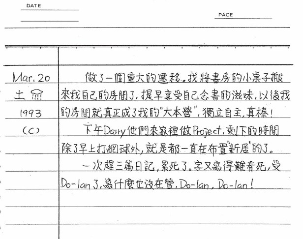以下是30年前的今天(1993年3月20日)當時16歲的你所親筆寫下的日記: