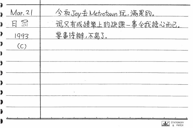 以下是30年前的今天(1993年3月21日)當時16歲的你所親筆寫下的日記: