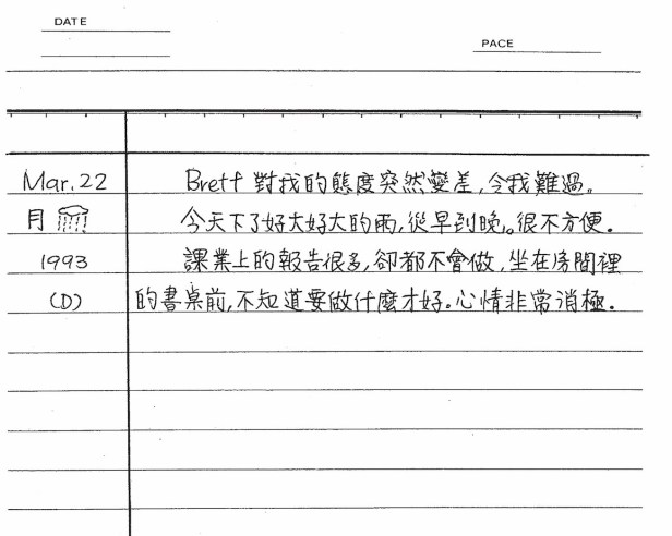 以下是30年前的今天(1993年3月22日)當時16歲的你所親筆寫下的日記: