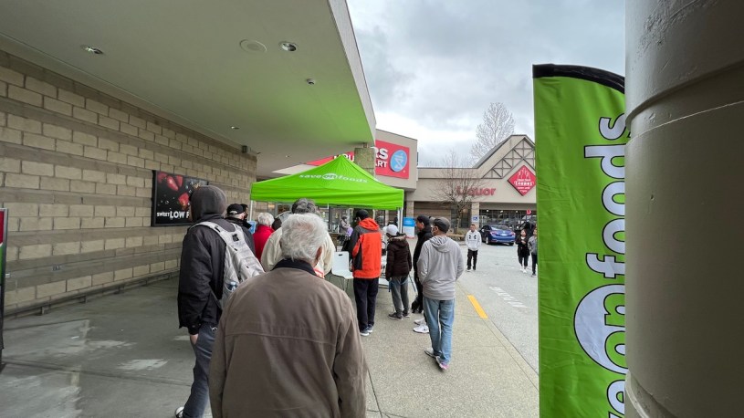 早上我們真的去家附近的Save-on-foods,去參觀它「第一天開幕日」。果然,停車場變得不一樣了,車子變一大堆,看來以後來這商場踩個車運動都很難了。我們太仰賴這個商場了,這商場孕育了我們生活很多方面,現在將會更多,雖然我們去過很多家超市了,包括很多家Save-on-foods了,可是家裡旁邊的這家,我們第一眼還是會好奇「它有多大?」,好隊友說,不大,亞洲食物不多,蠻失望的;在我眼中,看起來還不錯,很新,熟食部令人垂涎欲滴,它的壽司部門滿滿的各種壽司,今天因為才剛開,所有貨架上面都是滿滿的,沒有一個空隙,我們從沒在超市看過。後來哥哥點餐一盒壽司,妹妹則再次「什麼都不喜歡吃」。