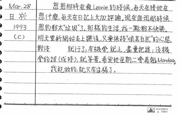 以下是30年前的今天(1993年3月28日)當時16歲的你所親筆寫下的日記: