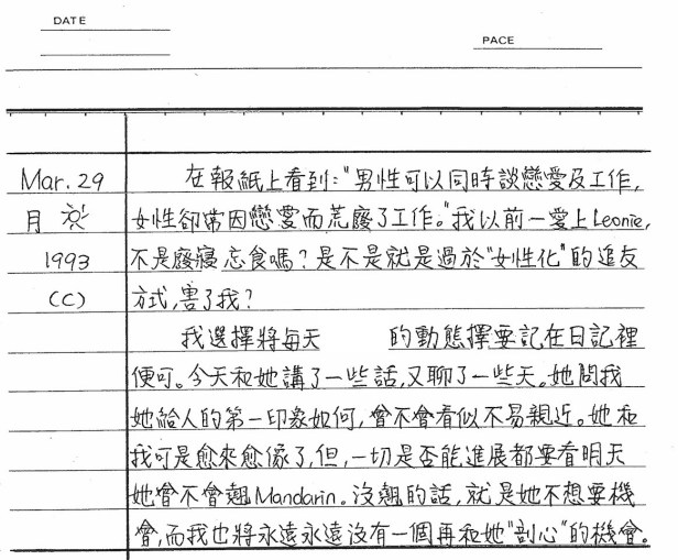 以下是30年前的今天(1993年3月29日)當時16歲的你所親筆寫下的日記: