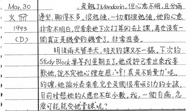 以下是30年前的今天(1993年3月30日)當時16歲的你所親筆寫下的日記:
