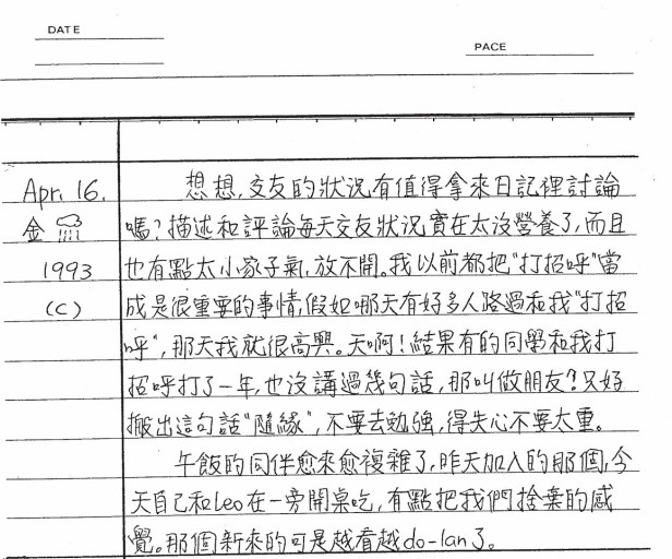 以下是30年前的今天(1993年4月16日)當時16歲的你所親筆寫下的日記: