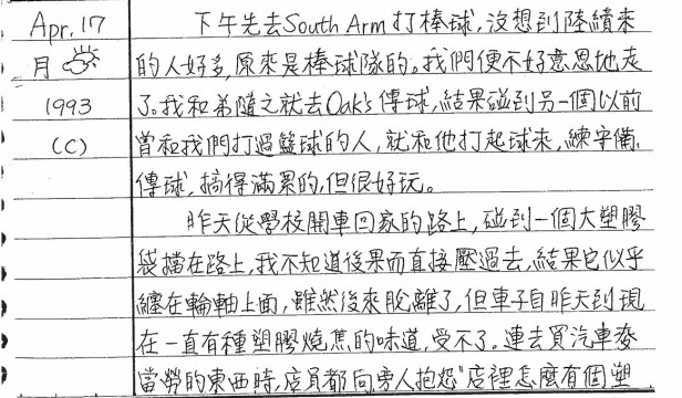 以下是30年前的今天(1993年4月17日)當時16歲的你所親筆寫下的日記: