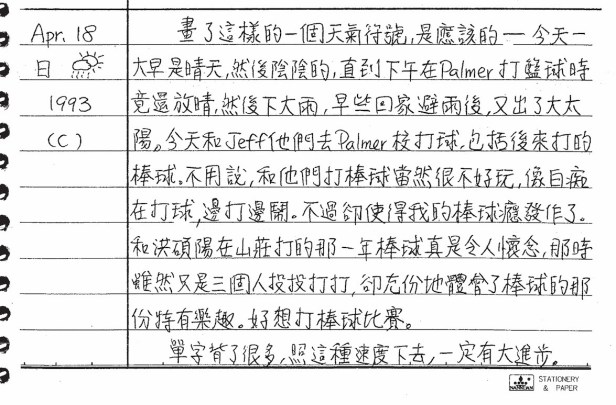 以下是30年前的今天(1993年4月18日)當時16歲的你所親筆寫下的日記: