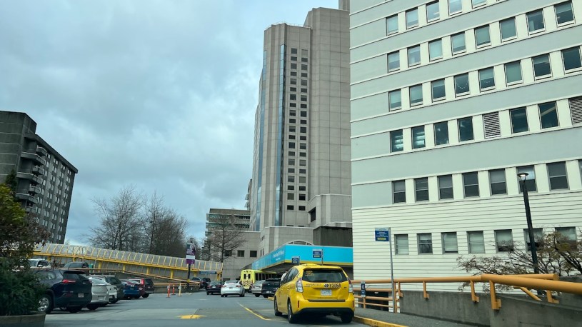 這是我第一次在溫哥華來到「醫院」的外圍。當年於溫哥華住八年,我們全家人很健康,居然從來沒有去過任何這邊的大醫院,今天來到的是溫哥華的總醫院Vancouver General Hospital,居然就在我以前唸書的Dorset語言學校旁邊,原來那一群大樓就是醫院,而它的主大樓大概也只有台灣的馬偕醫院大小,感覺不大,不過後面很深,大樓群很多,有舊的有新的,牆色都像慈濟醫院灰灰的,門口一條由本省張揚的首富所捐出的鮮藍色招牌寫上「Jim Patterson Pavilion main entrance」,我居然在這裡找到停車位,在這裡等朋友,一直有鮮黃色的「Hospital Transfers」車子過來載走了病床上面的人,病床上面的人有的看起來沒太老,卻被綁著、躺著只能任由兩個人來抬動,誰希望一直待在醫院這裡呢。不過這地方感覺還不像醫院,比較像是沒有生氣的老人院──雖然外面的樹兒正露出小小的紅色的初苞,隨風攀搖,但整片地方太安靜了。還沒開始下雨的陰天,這麼多樓房中有多少人正在裡面默默的痛、難受、熬著,等待這套超緩慢的溫哥華醫療系統。
