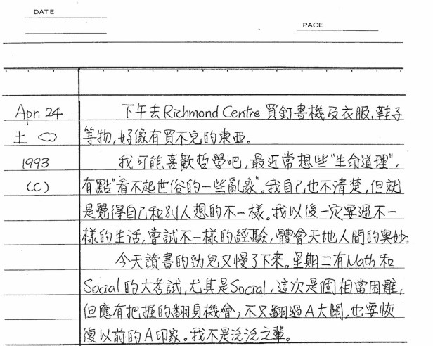 以下是30年前的今天(1993年4月24日)當時16歲的你所親筆寫下的日記: