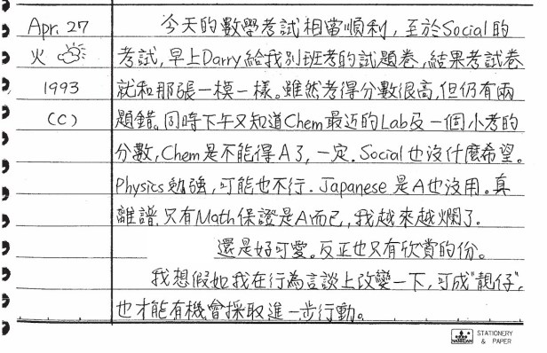 以下是30年前的今天(1993年4月27日)當時16歲的你所親筆寫下的日記: