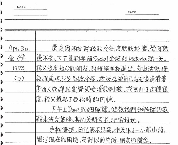 以下是30年前的今天(1993年4月30日)當時16歲的你所親筆寫下的日記: