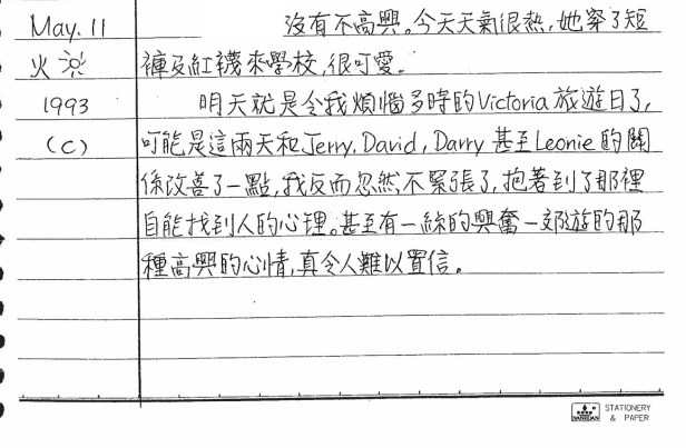 以下是30年前的今天(1993年5月11日)當時16歲的你所親筆寫下的日記: