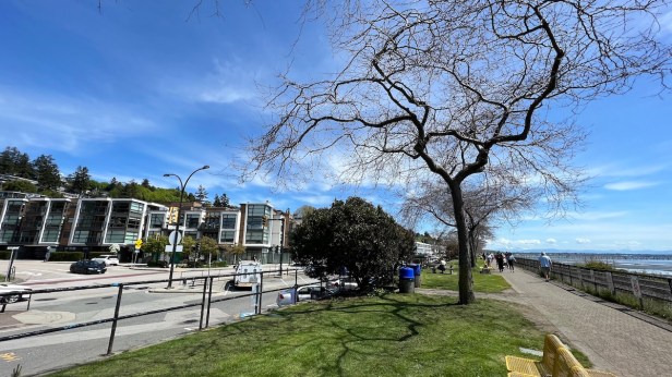 這次在台灣與溫哥華報稅,更是讓我更加強的希望我可以趕快脫貧,尤其看著White Rock這海景第一排、新蓋的apartement其是角落那間單位,被超大的玻璃圍起角落,裡面有一套白色的沙發,看到裡頭空間是挖空的,有樓中樓,樓梯往上,對這家屋主來說,窗外馬上就是鐵軌還有海邊,草皮上種了一排樹木,作為陪襯,不會打擾海景。我希望明年我可以買這裡。