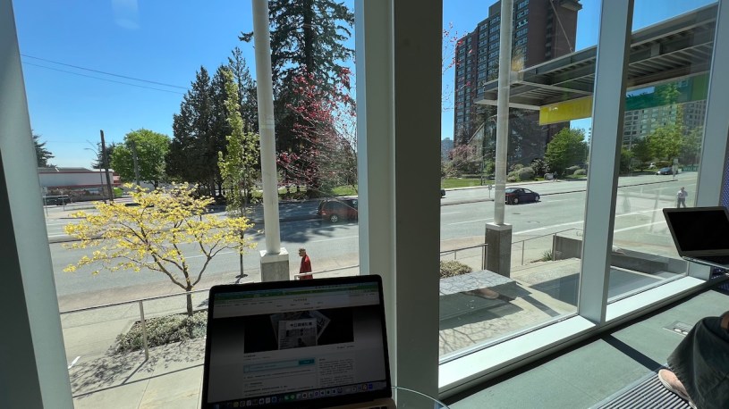 在Myst我原本與兩個好朋友吃的很開心,但我突然心中一悲,好像覺得我必須要回家,我也不知道是為什麼,所以吃了一個半小時就離開了。我應該是因為想太多而造成某程度的低落,低落的症狀是對所有事物皆無法投入,只想坐著不動,或睡,或找人說話。不過講這種東西又是非常的讓人不愉悅,因此通常無法講。現在無法講。儘管我來到的這間Burnaby圖書分館,又是一棟新的,整片的角落玻璃窗,沿著它有一條都是個人沙發與個人小桌,外面是生生不息的Kingsway車流,這麼棒的陽光到底在悲傷什麼呢?