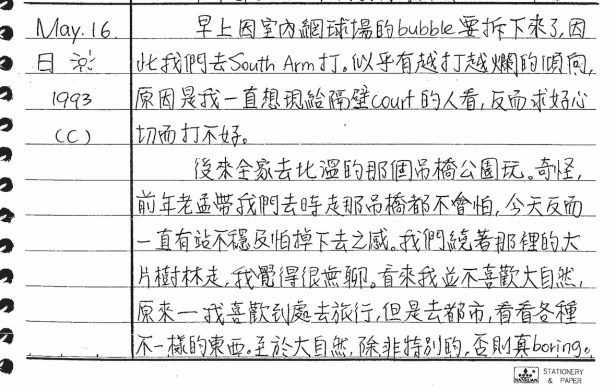 以下是30年前的今天(1993年5月16日)當時16歲的你所親筆寫下的日記: