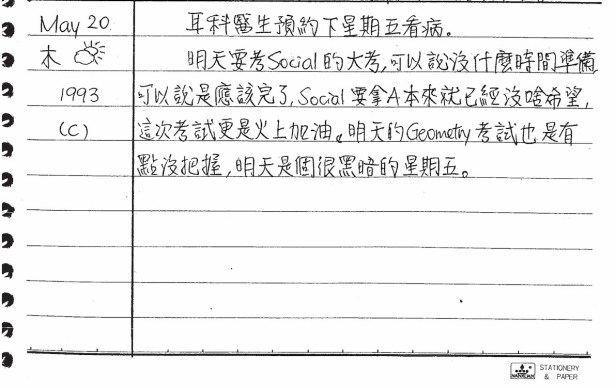 以下是30年前的今天(1993年5月20日)當時16歲的你所親筆寫下的日記: