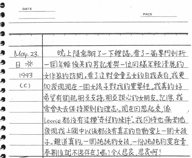 以下是30年前的今天(1993年5月23日)當時16歲的你所親筆寫下的日記:
