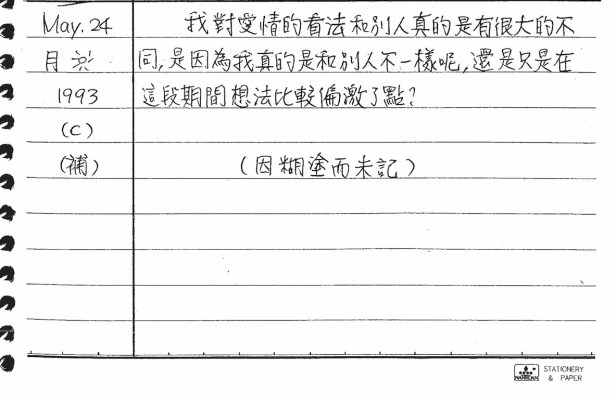 以下是30年前的今天(1993年5月24日)當時16歲的你所親筆寫下的日記:
