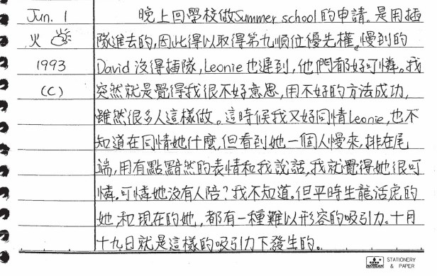 以下是30年前的今天(1993年6月1日)當時16歲的你所親筆寫下的日記: