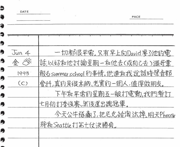 以下是30年前的今天(1993年6月4日)當時16歲的你所親筆寫下的日記: